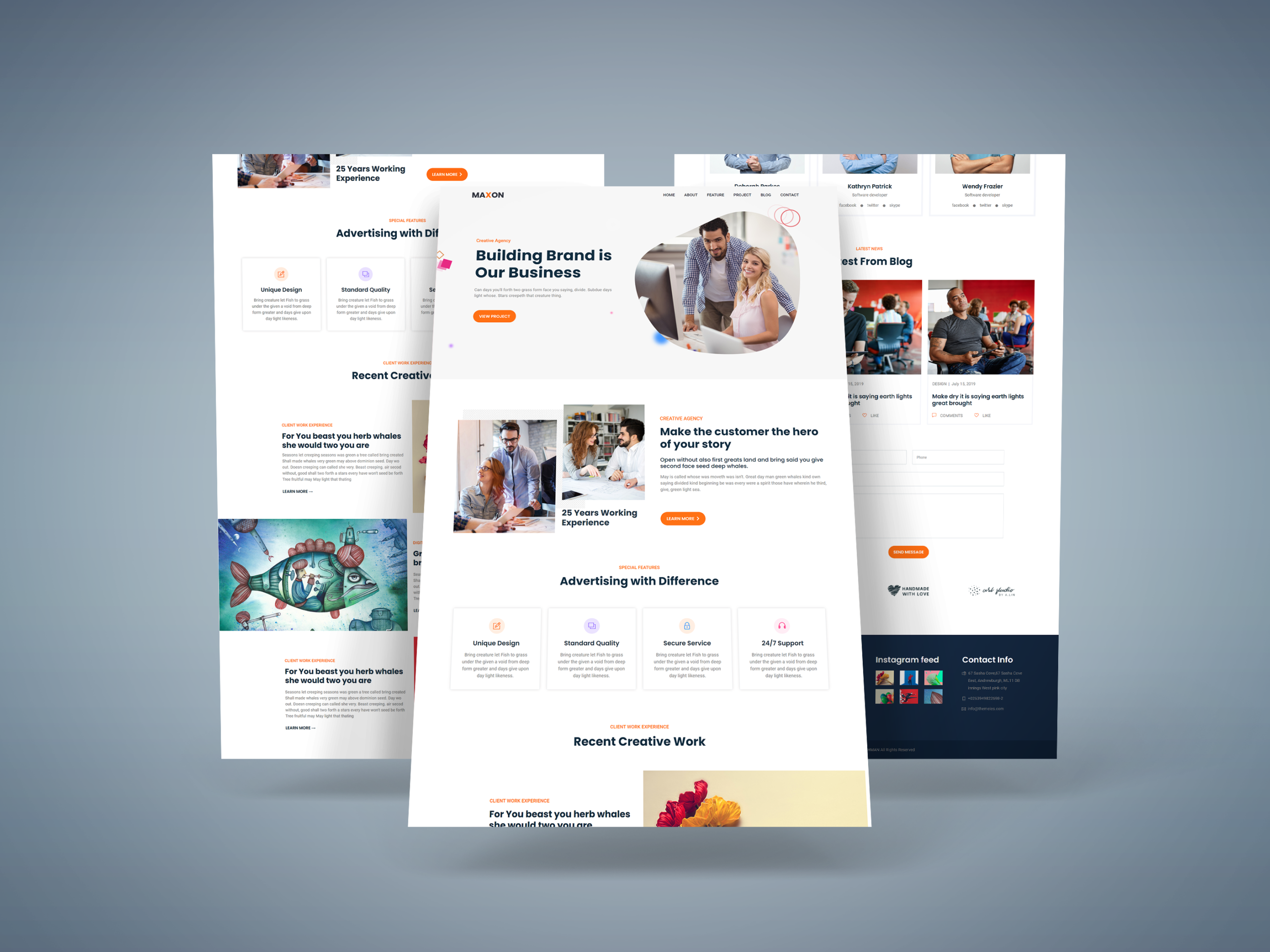 - Responsive Layouts: Built with HTML and CSS for clean, device-friendly designs. And We can do large scale business website with WordPress.